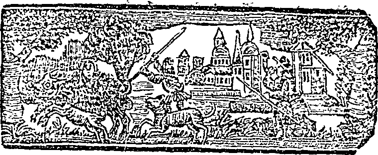 headpiece, city, town, scene, dog, hunt, boar